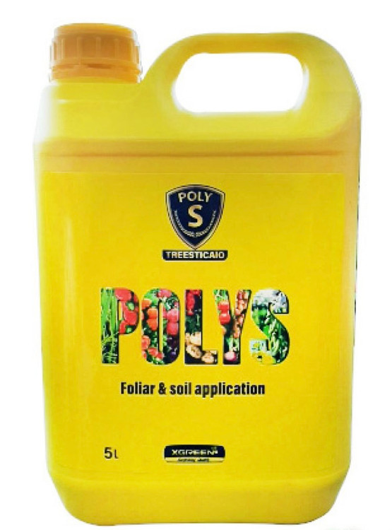 پلی اس Poly-S یا تیوسولفید کلسیم ماده موثره این کودسم است که ضمن تامین عنصر گوگرد و کلسیم باعث محافظت گیاهان شما از گزند طیف وسیعی از حشرات مانند شته، کنه، شپشک و بیماری هایی مانند سفیدک سطحی و لکه برگی می شود. از این محلول به نسبت 2 درصد در سمپاشی زمستانه و یا 7 در هزار در داخل فصل می توانید استفاده کنید.